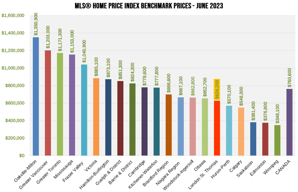 "When compared to other values recorded provincially and nationally, homes in our area continue to remain relatively affordable,” Miller said. The following chart shows the latest HPI benchmark prices, courtesy of CREA.