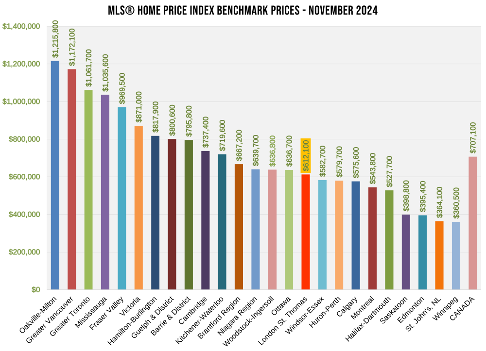 "London and St. Thomas continue to offer exceptional value in the Canadian real estate market. With a benchmark price of $612,100, our region remains one of the most affordable among major centers. This affordability, combined with our vibrant community and quality of life, makes London and St. Thomas an attractive destination for homebuyers. Compared to cities like Oakville-Milton at $1,215,800 and Greater Vancouver at $1,117,100, our market provides a more accessible entry point for families and individuals looking to invest in their future," said Amess.