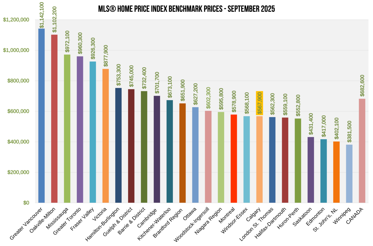 The chart below shows the most recent HPI benchmark prices across the country, courtesy of CREA.