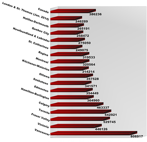 The following chart, based on data taken from CREA's National MLS® Report for November 2013 (the latest information available), demonstrates how homes in LSTAR's jurisdiction continue to maintain their affordability compared to other major Ontario and Canadian centers.