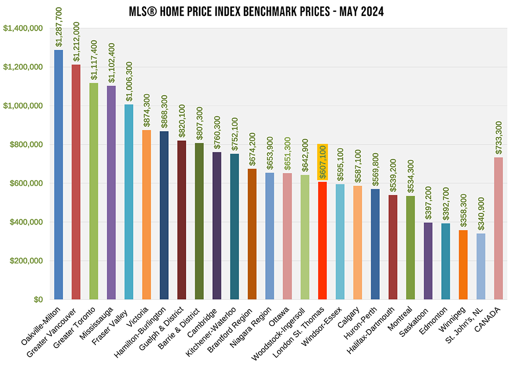 "When compared to the prices recorded in other provincial and national centres, homes within LSTAR’s jurisdiction appear competitive for buyers, positioning the region as an attractive housing market," Amess said. The table below shows the most recent HPI benchmark prices, as provided by CREA.