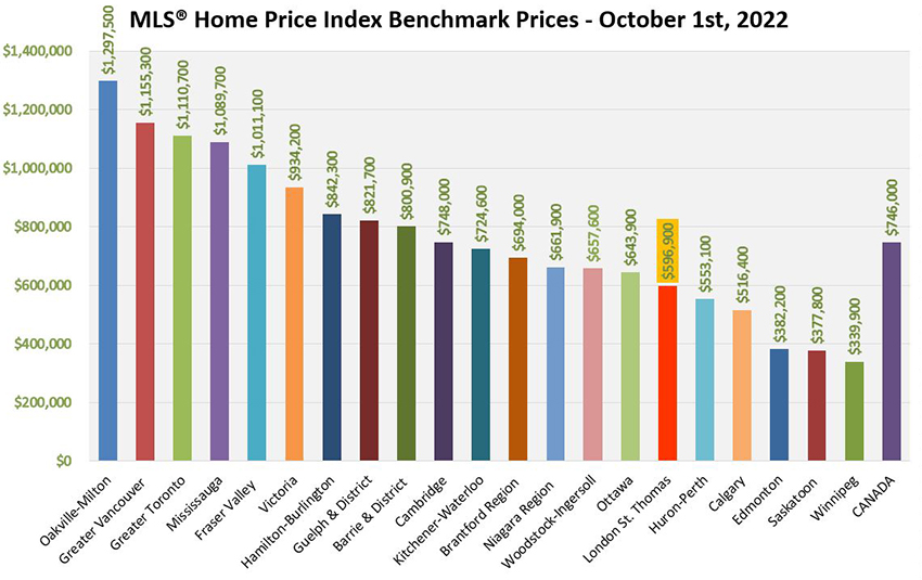 "When compared to other values recorded provincially and nationally, homes in our area continue to remain relatively affordable," Pawlowski said. The following chart shows HPI benchmark prices for September, courtesy of CREA.