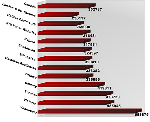 When compared to other comparable communities across Canada, the London CMA remains very affordable as the following chart illustrates. (The data is from December 2012 and the latest information available.)
